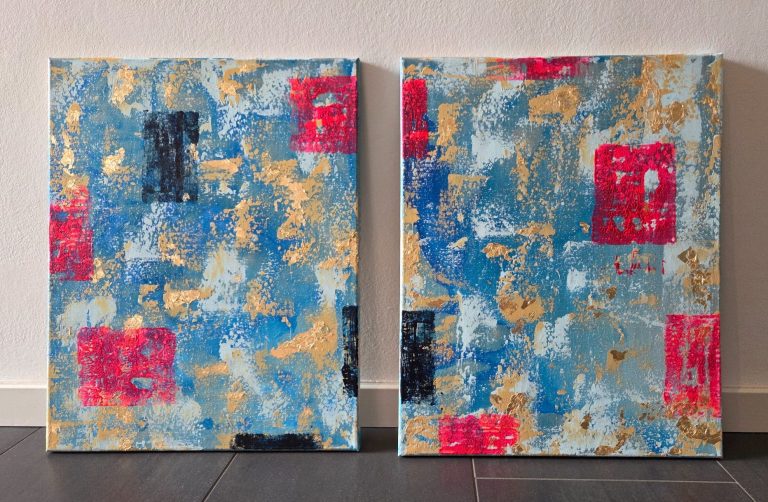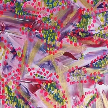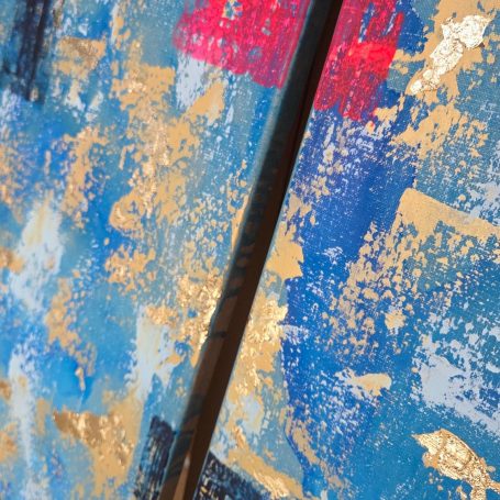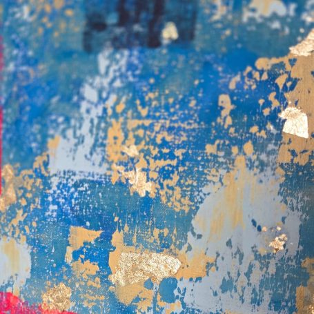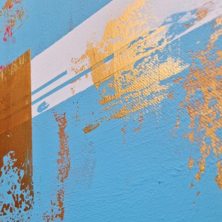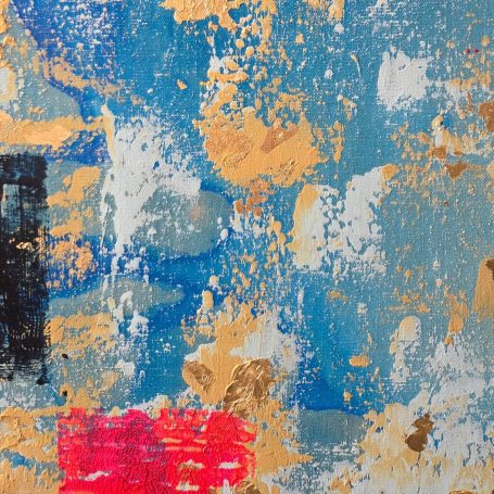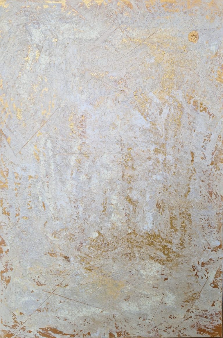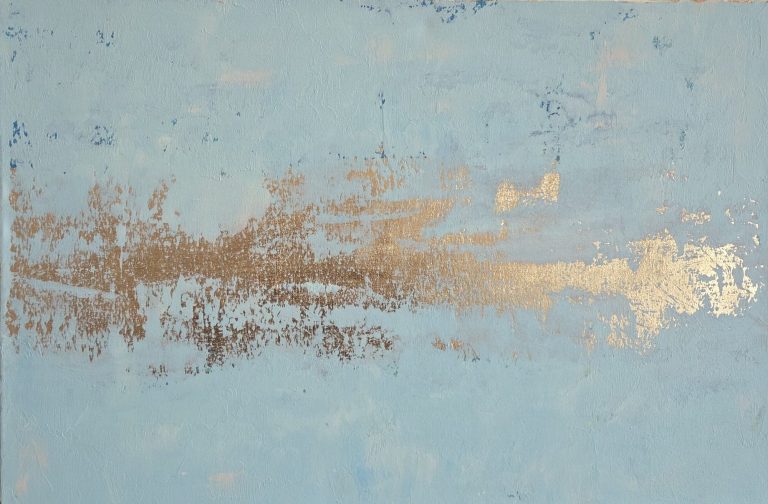 Acrylic, gold leaves on canvas